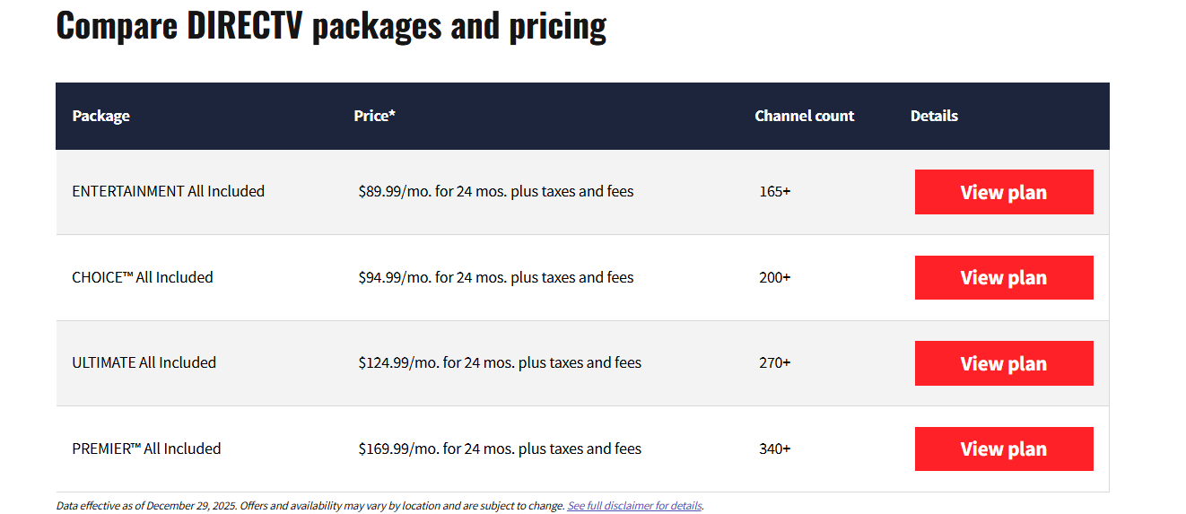 DIRECTV Packages, Plans, and Pricing